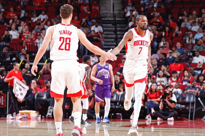 上赛季的火箭,虽未跻身季后赛,却展现出极强的青春活力。当申京、小贾巴里・史密斯、阿门・汤普森三人同时在场时,483分钟内百回合能赢对手13.9分,年轻人之间的配合流畅且充满创造力。可杜兰特的到来,彻底打破了这套年轻体系的平衡。本赛季,当这三人加上杜兰特组成四人组时,百回合净负对手3.3分;火箭效率最高的五人组合(谢泼德+小贾巴里・史密斯+伊森+申京+卡佩拉)里,甚至没有杜兰特的身影;就连球队最佳二人组,也是申京与伊森的内线搭档,而非杜兰特与任何核心的组合。