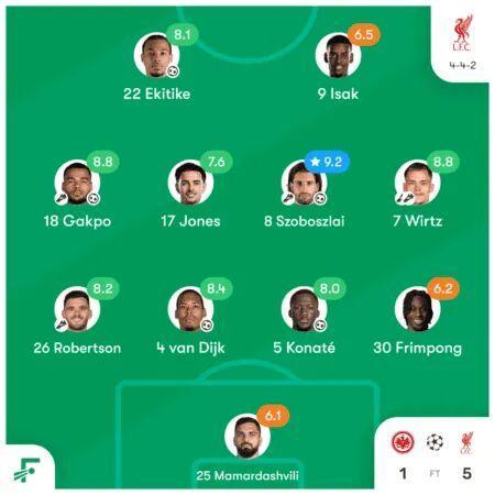 出任左边前卫的加克波,本场比赛同样非常出色。他整晚都在折磨法兰克福的防线,送出了4次关键传球,创造了3次绝佳机会,为队长范戴克送上助攻的同时,还打进了球队的第4粒进球。